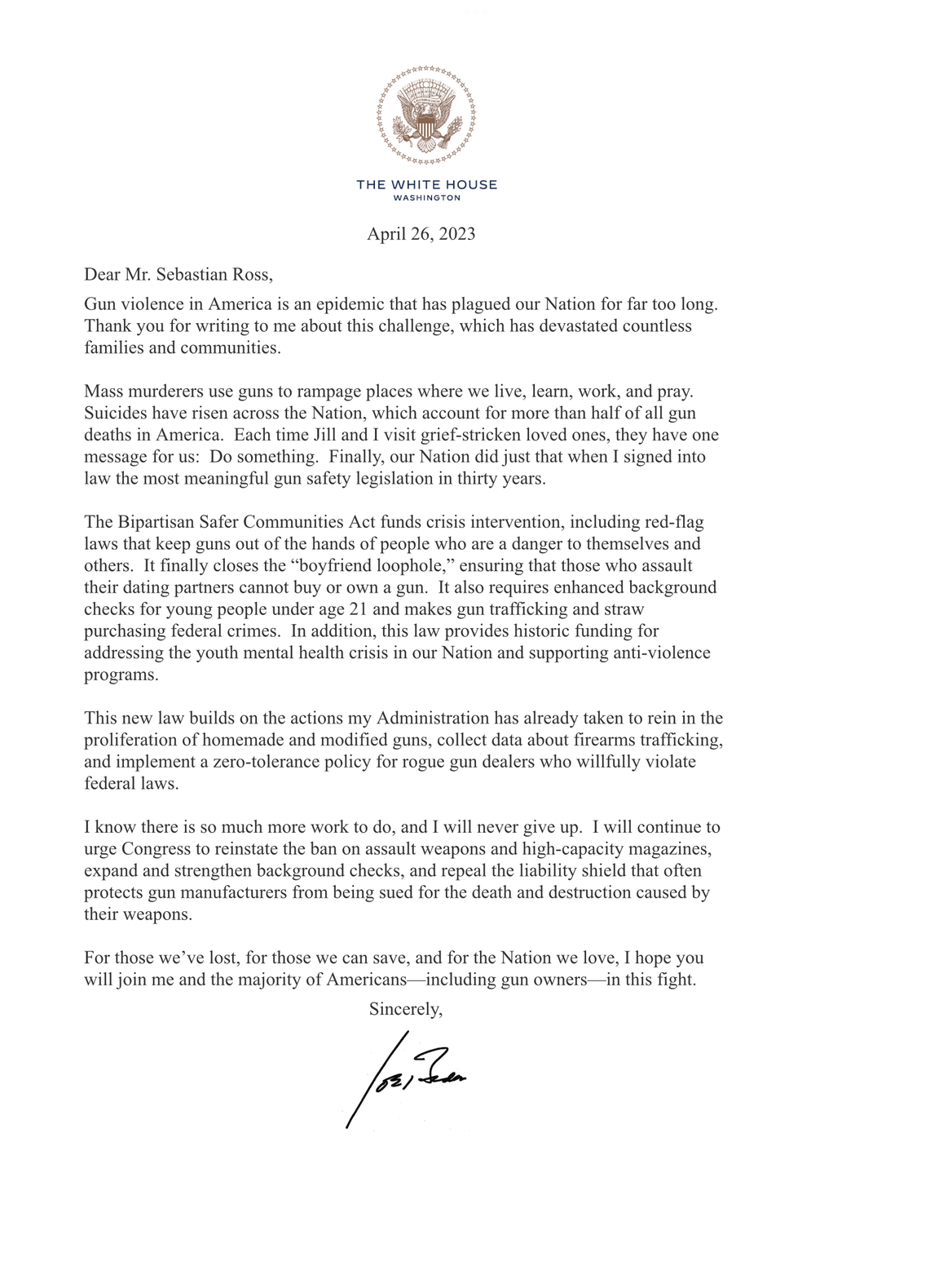 Our personal letter from President Joe Biden